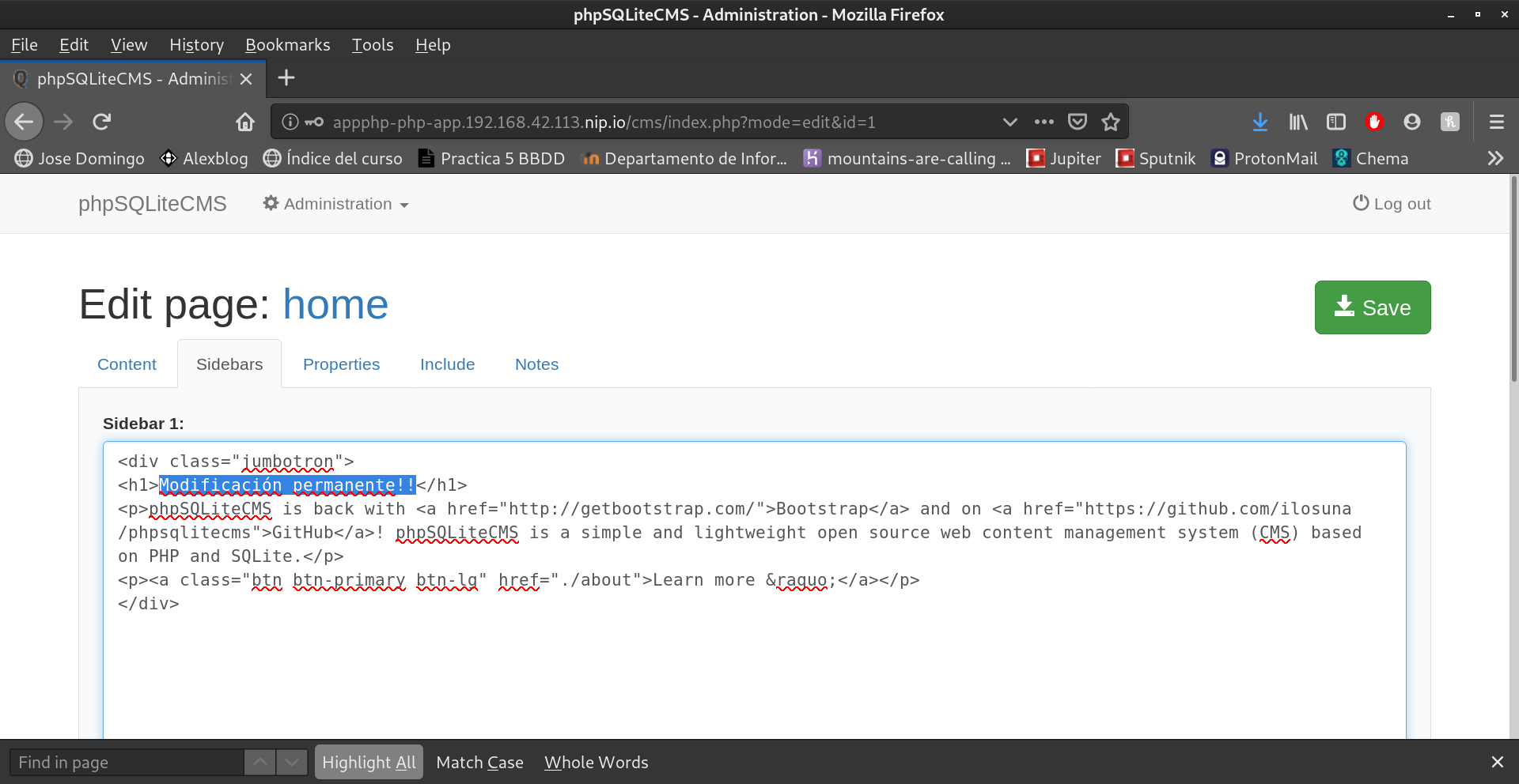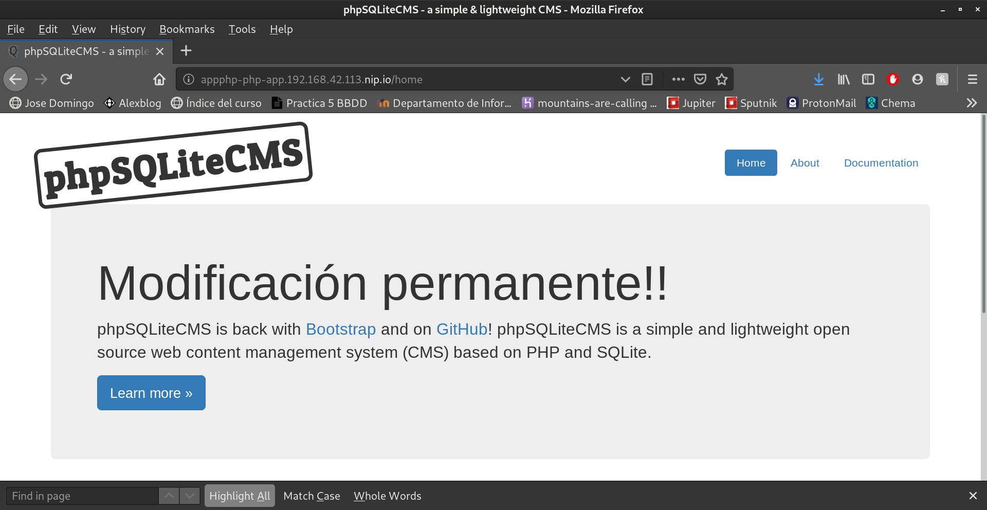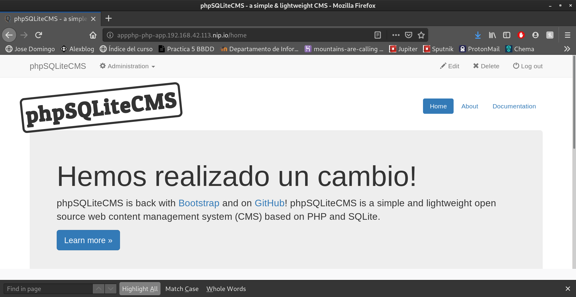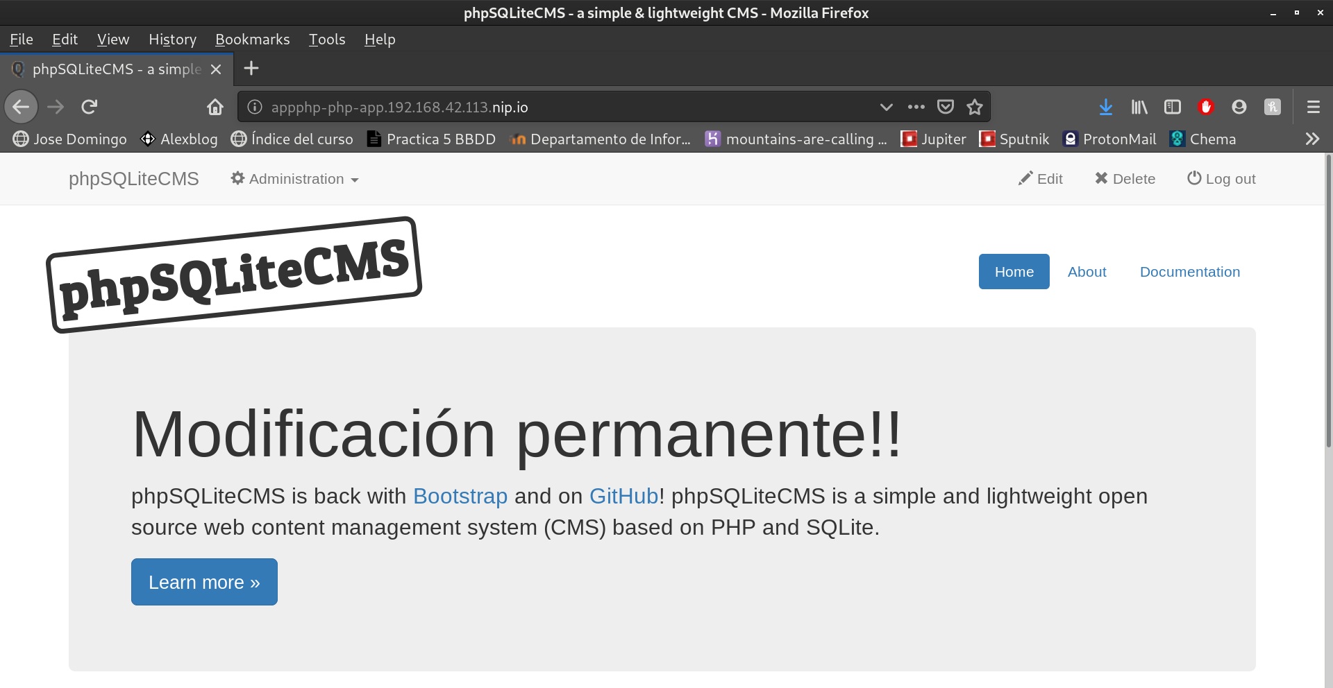 luis@kutulu:~/phpsqlitecms/cms$ oc cp data appphp-2-6dnr9:cms/Probamos a modificar la página principal: