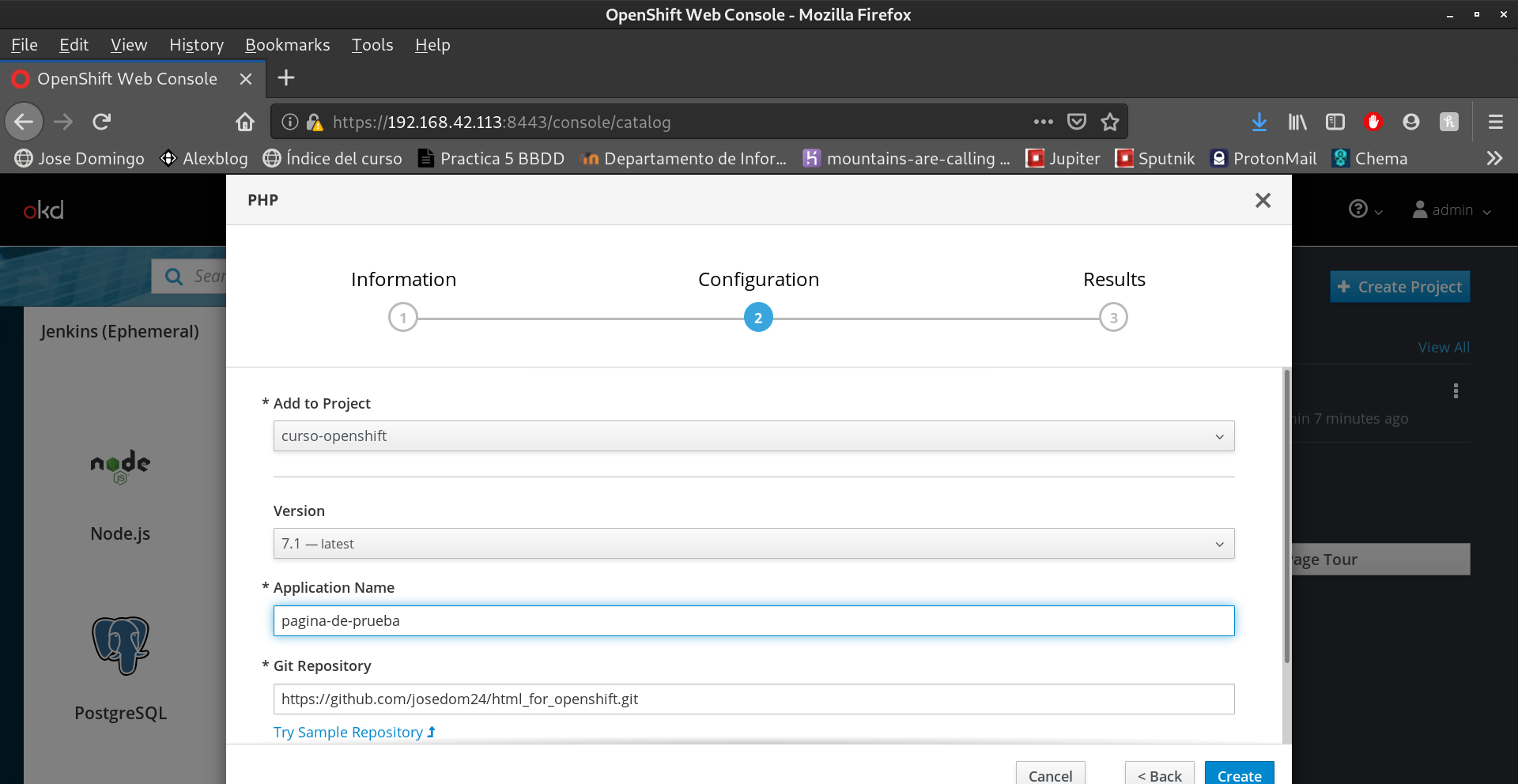 oc expose svc/appphpAccedemos a la web y realizamos una modificación de la página principal: