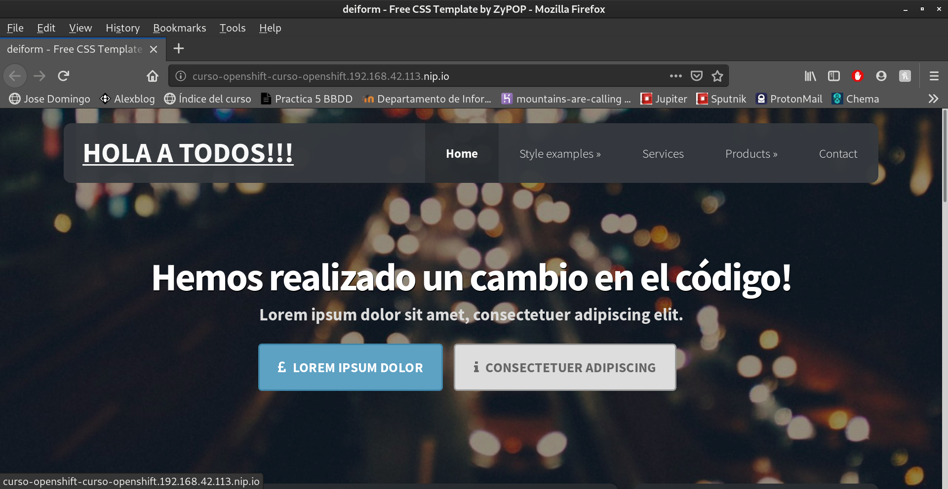http://pagina-estatica-aplicacion-desde-oc.192.168.42.113.nip.io to pod port 8080-tcp (svc/pagina-estatica)